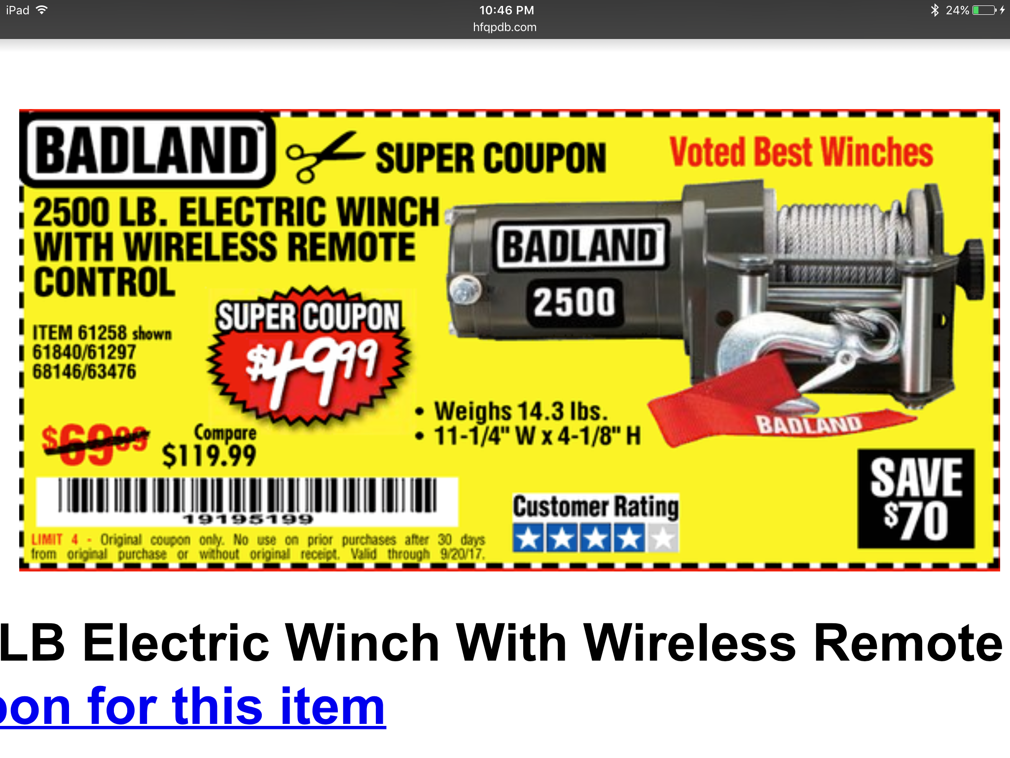 Harbor freight winch coupon code. Location information - USA.com USA.com provides easy to find states, metro areas, counties, cities, zip codes, and area codes information, including population, races, income, housing, school ... › automotiveAutomotive – Harbor Freight Tools For any difficulty using this site with a screen reader or because of a disability, please contact us at 1-800-444-3353 or cs@harborfreight.com.. For California consumers: more information about our privacy practices.